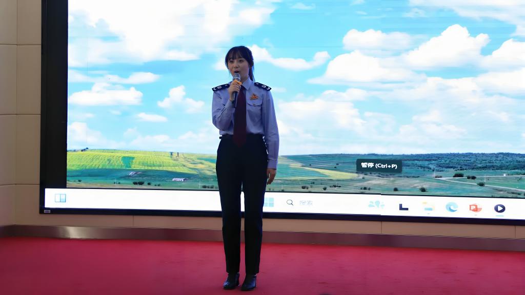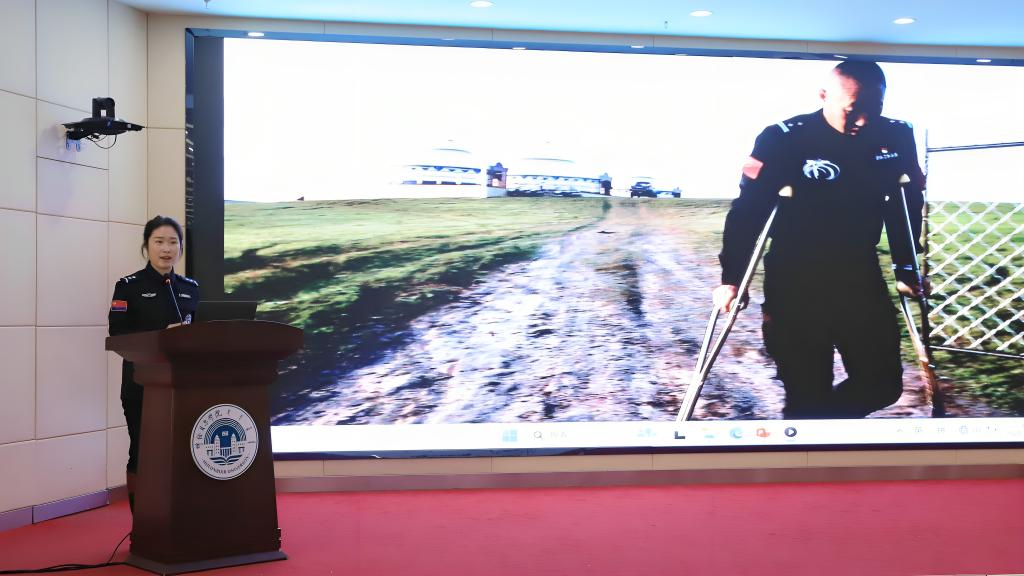 陈巴尔虎旗公安局“海东青”骑警队队员王雪瑶以《草原上的“海东青”》为题,讲述“海东青”骑警队扎根草原,维护边疆稳定和守护群众平安的故事。她鼓励青年学子要像“海东青”一样,奋力高飞,忠诚、勇敢、永不放弃。