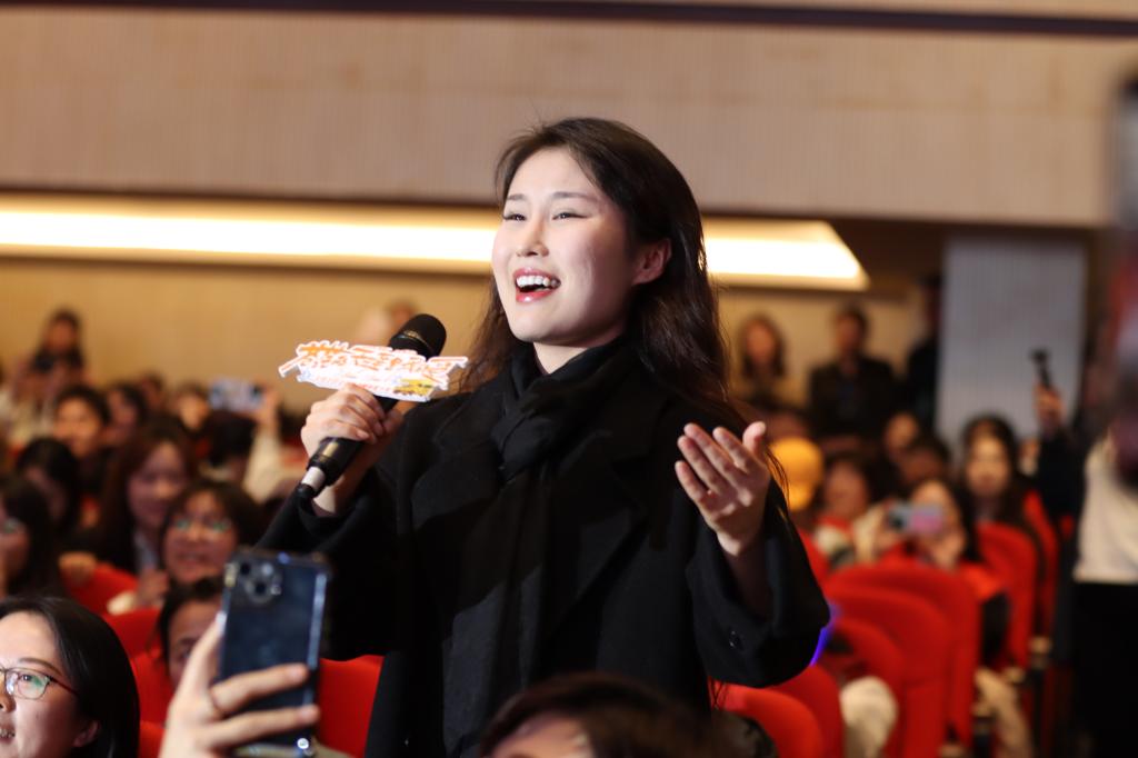 互动环节中,同学们积极踊跃提问,从角色理解到拍摄趣事,主创们都一一耐心解答。现场惊喜不断,参与路演的同学送上自己精心准备的礼物并现场唱起蒙古族长调歌曲《辽阔的草原》。随着路演的推进,现场气氛愈发高涨。主创们鼓励大家走进影院支持《苍茫的天涯是我的爱》。他们表示,这部电影不仅有精彩的喜剧情节,更有对人生、对梦想的思考,希望能给观众带来欢笑的同时,也能带来一些温暖与感动。