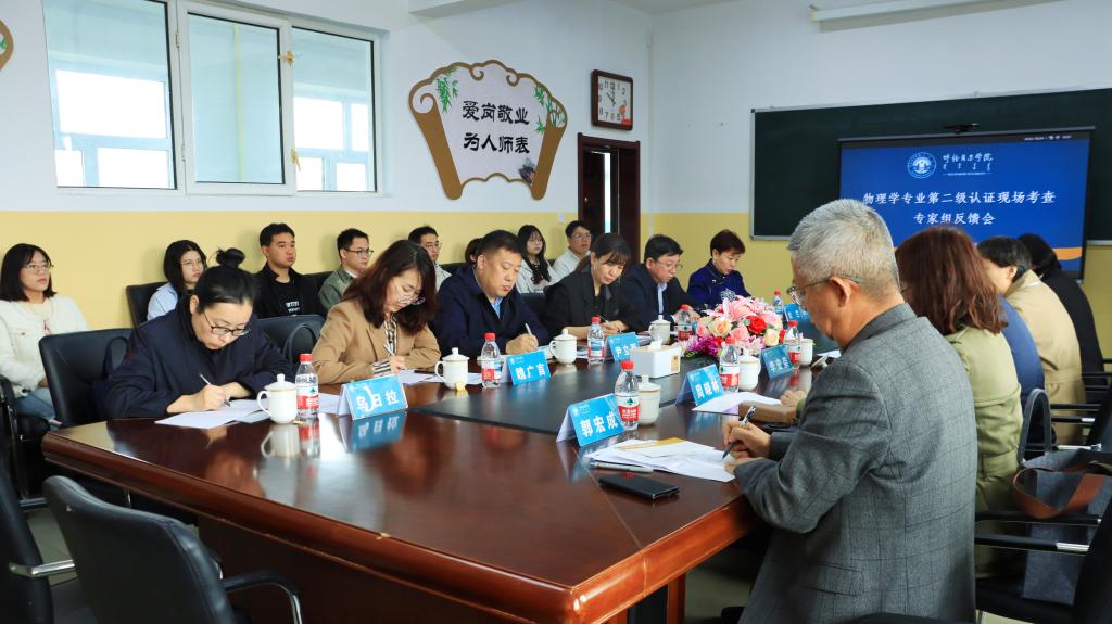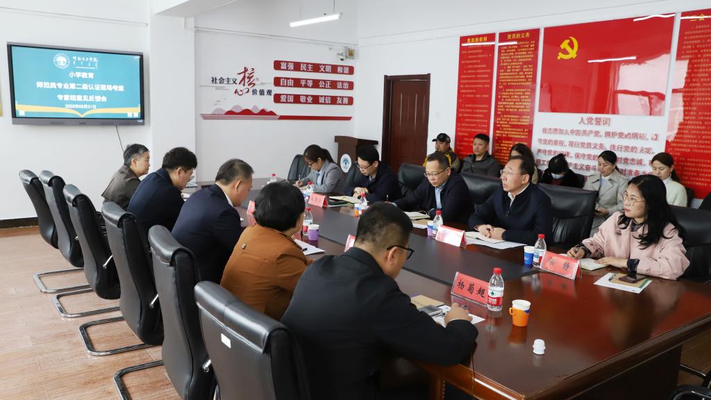 专家组成员在二级学院就音乐学、教育技术学、小学教育、物理学专业认证情况分别进行了意见反馈。所在二级学院的4位负责人对认证专家的反馈意见作表态发言。他们表示,对于所有专家意见全面认领、照单全收,坚决落实整改任务,补齐短板,强化弱项,进一步完善人才培养方案、课程大纲,不断提升课堂教学质量,提高师范专业的办学水平和人才培养质量。