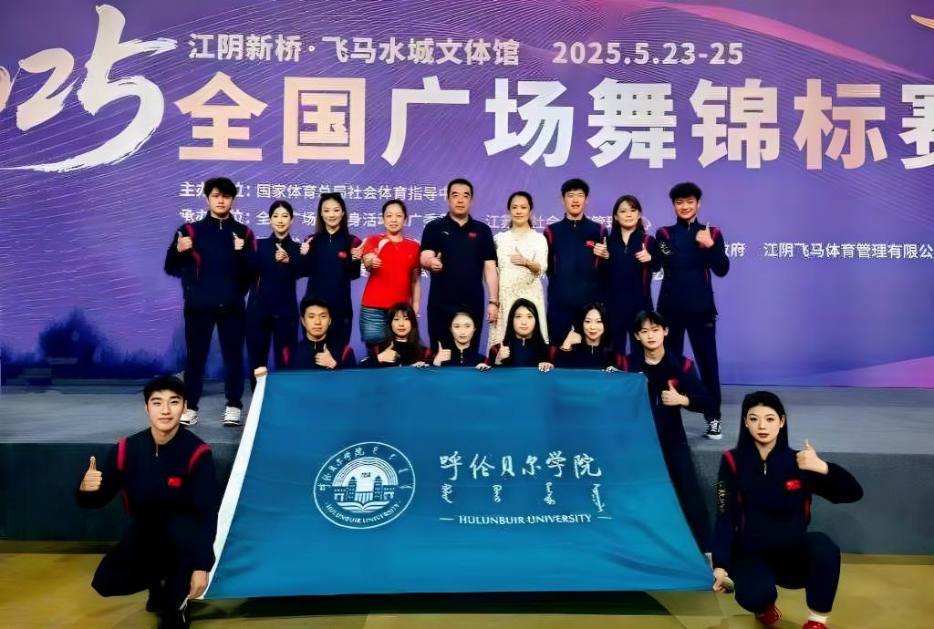 2025年5月24日至26日,全国广场舞锦标赛在江苏省江阴市举行。BV伟德体育学院(冰雪运动学院)院长李晓峰亲自带队,携王瑞、王丹两名老师及14名学子代表内蒙古自治区高校参赛,凭借出色表现勇夺高校乙组规定套路一等奖(第一名)和高校乙组自编健身操一等奖(第一名)的双料冠军,为学校赢得了荣誉。