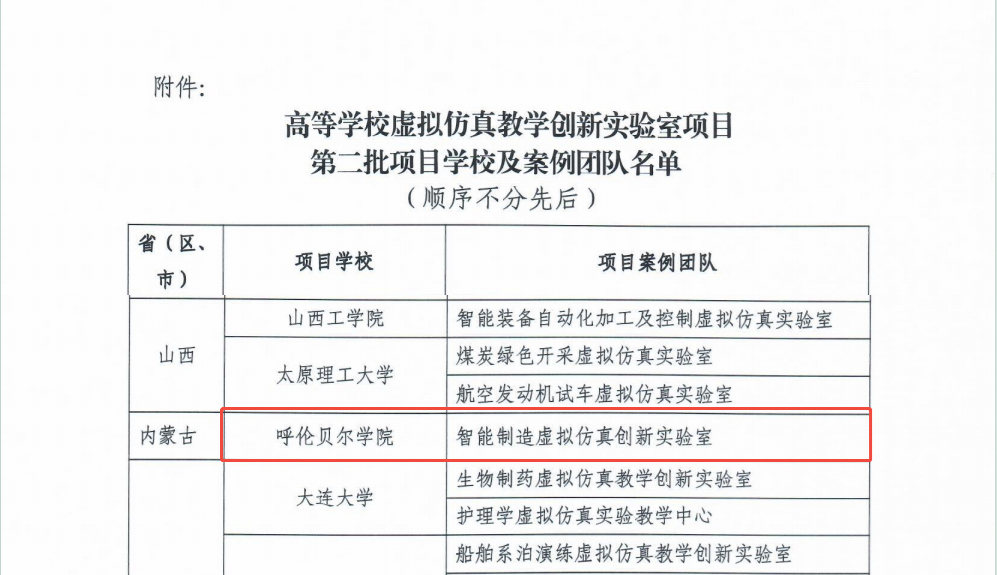 近日,教育部教育技术与资源发展中心(中央电化教育馆)下发《关于公布高等学校虚拟仿真教学创新实验室项目第二批项目学校及案例团队名单的通知》(教技资〔2025〕41号),BV伟德成功入选高等学校虚拟仿真教学创新实验室项目学校,同时由教务处组织、工学院牵头申报的“智能制造虚拟仿真创新实验室”被认定为该项目案例团队,成为本批次内蒙古自治区唯一获此殊荣的高校。