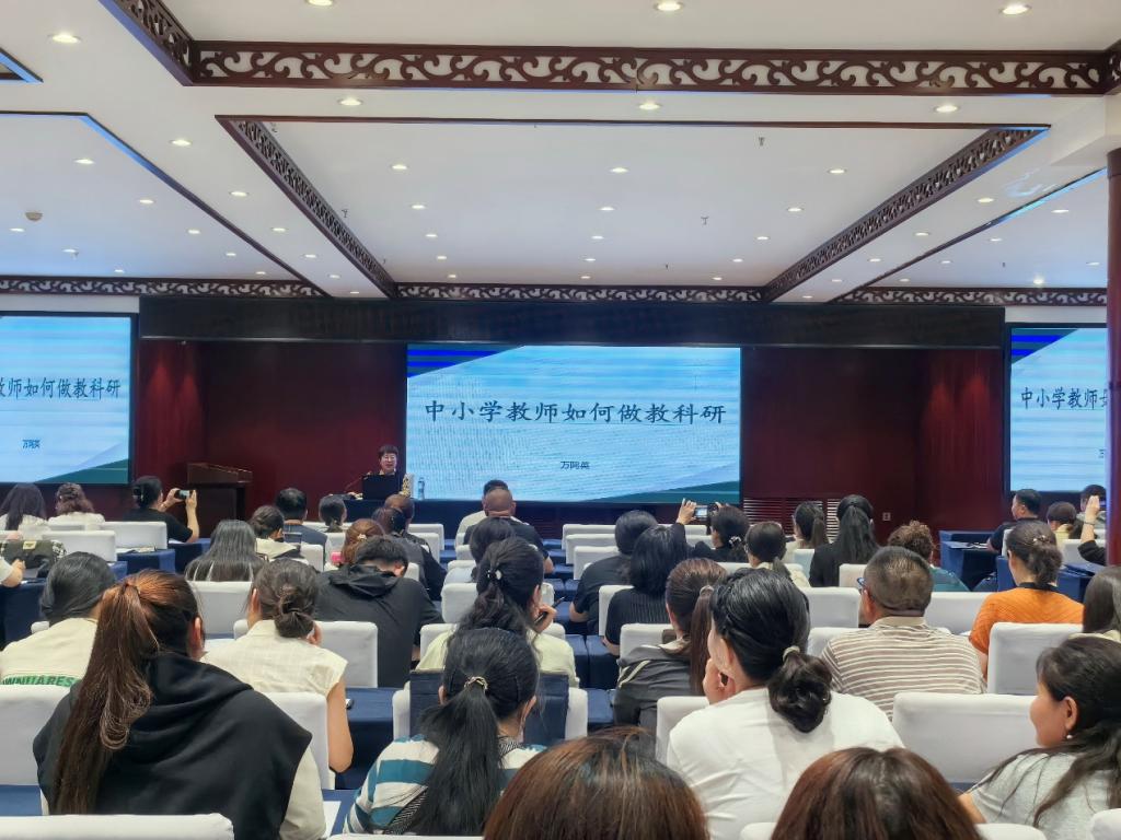 开班仪式结束后,BV伟德数理学院院长万阿英教授以《中小学教师如何做教科研》为题,为参训教师作专题讲座。万阿英从教育科研的重要意义、核心方法策略与实践路径等方面进行系统讲解,为参训教师搭建了“教学实践与教科研融合”的思路框架,助力教师提升教科研能力,为后续教育教学创新奠定基础。