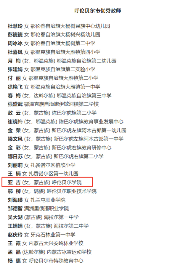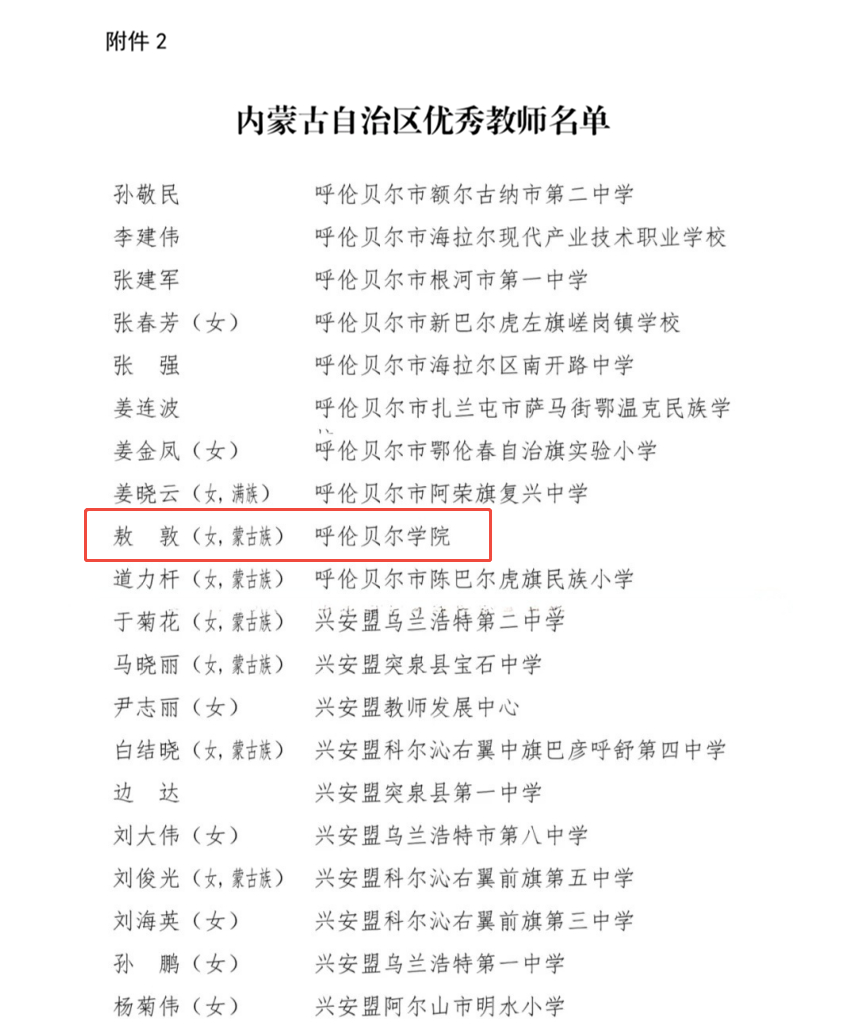 在第41个教师节来临之际,为弘扬教育家精神、营造尊师重教风尚,自治区人民政府及呼伦贝尔市委、市政府分别对全区、全市教育系统先进集体与先进个人进行表彰。BV伟德教师与集体凭借扎实的工作成效斩获多项荣誉:教育学院敖敦老师荣获“内蒙古自治区优秀教师”称号,旅游地理与历史文化学院亚吉老师获“呼伦贝尔市优秀教师”称号,马克思主义学院刘琳老师获“呼伦贝尔市优秀德育工作者”称号,马克思主义学院明兰老师获“呼伦贝尔市优秀思想政治课教师”称号;数理学院获评“呼伦贝尔市教育系统先进集体”,充分彰显BV伟德教育教学与育人工作的突出成果。