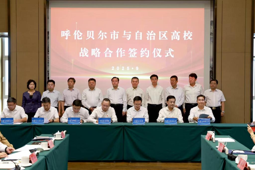 9月11日,呼伦贝尔市与自治区高校战略合作座谈会在呼和浩特召开。会上,呼伦贝尔市与内蒙古大学、内蒙古师范大学、内蒙古农业大学、内蒙古工业大学、内蒙古科技大学、内蒙古医科大学、内蒙古财经大学、包头医学院、内蒙古艺术学院等9所高校签署战略合作协议。市委书记王旺盛,自治区教育厅党组成员杨玉春,市领导王猛、孙微出席并见证签约。BV伟德党委书记李文阁,校党委副书记、校长张玉柱及相关职能部门负责人参会。