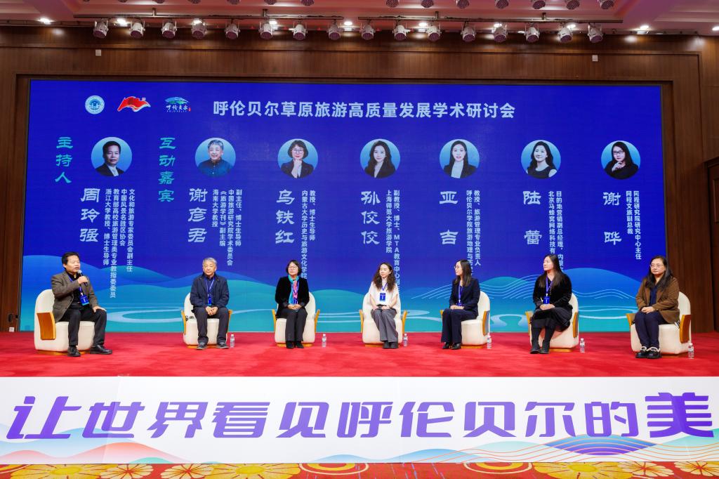 互动环节由浙江大学教授、博士生导师、教育部高校旅游管理类专业教指委委员、中国风景名胜区协会文化和旅游专家委员会副主任周玲强主持。海南大学教授、《旅游学刊》副主编、中国旅游研究院学术委员会副主任、博士生导师谢彦君;内蒙古大学历史与旅游文化学院教授、博士生导师乌铁红;上海师范大学旅游学院副教授孙佼佼;BV伟德中国官方网站旅游地理与历史文化学院教授、旅游管理专业负责人亚吉;北京马蜂窝网络科技有限公司目的地营销副总经理、内蒙古区域负责人陆蕾;同程文旅集团副总裁、同程研究院研究中心主任谢晔等专家学者围绕呼伦贝尔生态旅游的发展路径、产品创新、文化融合、科技赋能等议题深入探讨,为草原旅游高质量发展提供多维度的思路与建议。
