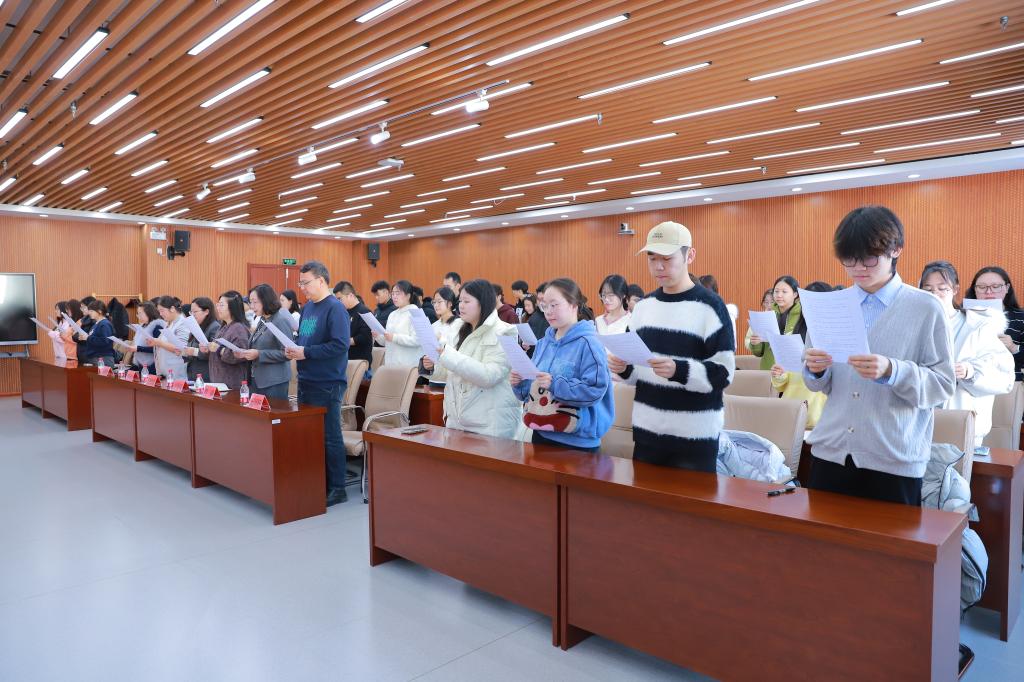 活动中,全体人员与主会场同步诵读了《中华人民共和国宪法》部分章节,在庄严的诵读声中深化对宪法条文的理解,体会宪法与国家发展、社会进步及个人成长的紧密联系,感受宪法作为根本法的权威与温度。现场氛围肃穆而热烈,充分展现了BV伟德师生弘扬宪法精神、坚定法治信仰的自觉与热情。