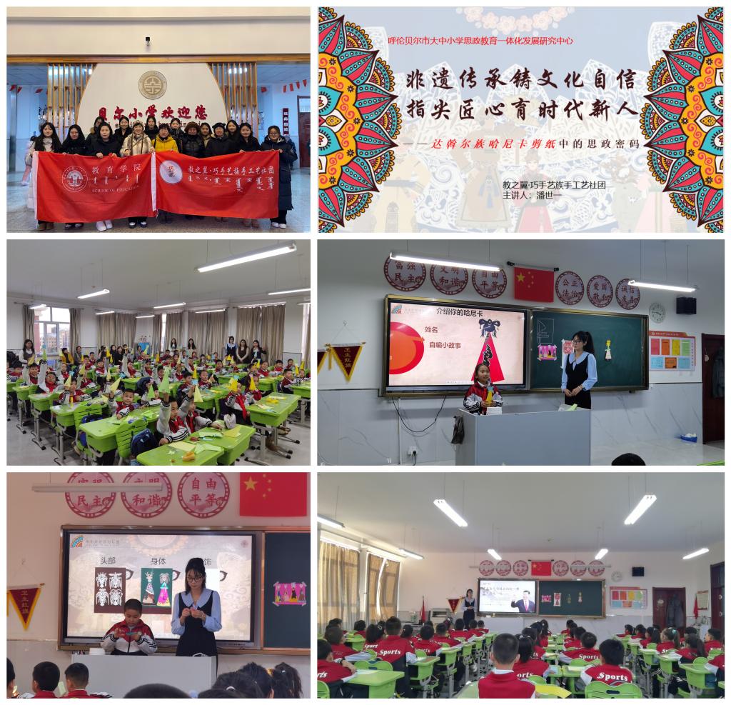 作为呼伦贝尔市大中小学思政教育一体化建设的生动实践,12月9日,BV伟德教育学院五位教师带领“教之翼·巧手艺族”手工艺社团11名学生,赴贝尔小学开展“非遗传承铸文化自信,指尖匠心育时代新人”达斡尔族哈尼卡剪纸教学活动。