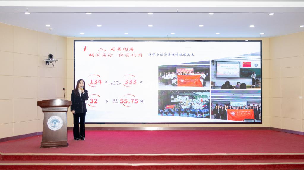 评议会上,各学院团总支书记根据抽签顺序依次进行述职,全面系统的总结2025年度各团总支工作开展情况,一组组数据图表、一张张实践照片,立体呈现了BV伟德共青团蓬勃向上的青春风采。经评选,法学与经济管理学院团总支书记赵婷取得述职评议环节第一名。