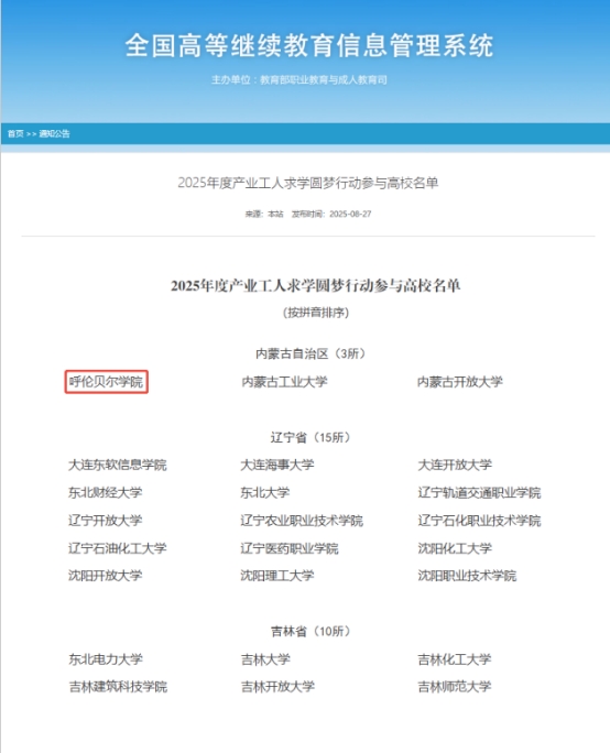 学校将以此次入选为契机,严格遵循“求学圆梦行动”目标要求,进一步整合优质教学资源,深化产教融合与校企协同育人,紧扣企业岗位需求量身定制培养方案,创新“学历提升+技能培训”融合模式,全力打造产业工人素质提升的优质平台。为培养更多知识型、技能型、创新型高素质劳动者,服务区域产业升级与国家发展战略,贡献呼院力量。