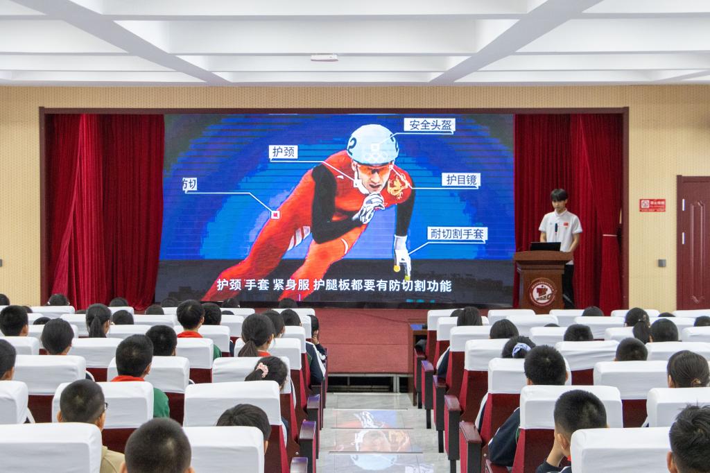 活动以“冬奥精神传承+专业知识普及+趣味实践体验”为主线,体育学院(冰雪运动学院)学生刘齐化身“冰雪导师”,结合冬奥健儿冲刺夺冠视频资料,系统介绍视频中的运动项目,如滑冰、滑雪等冰雪运动的起源与发展,通过趣味演示、动作拆解、互动问答等方式,深入浅出讲解运动技巧,重点围绕运动前热身、运动中防护、意外应急处理等关键环节开展安全知识宣讲,将专业技能转化为易懂实用的实践指南,为孩子们安全参与冰雪运动筑牢防线;来自学校美术学院与建筑工程学院学生带着创意模具,与天骄小学学生组队堆雪人,让冰雪实践成为连接高校与小学思政教育的纽带。