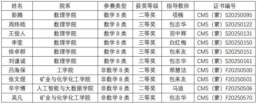 2025年12月24日,中国数学会公布了第十七届全国大学生数学竞赛各赛区成绩。BV伟德学子在竞争激烈的内蒙古赛区比赛中荣获多项奖励,展现了BV伟德扎实的数学教学功底与学生出色的学习能力。