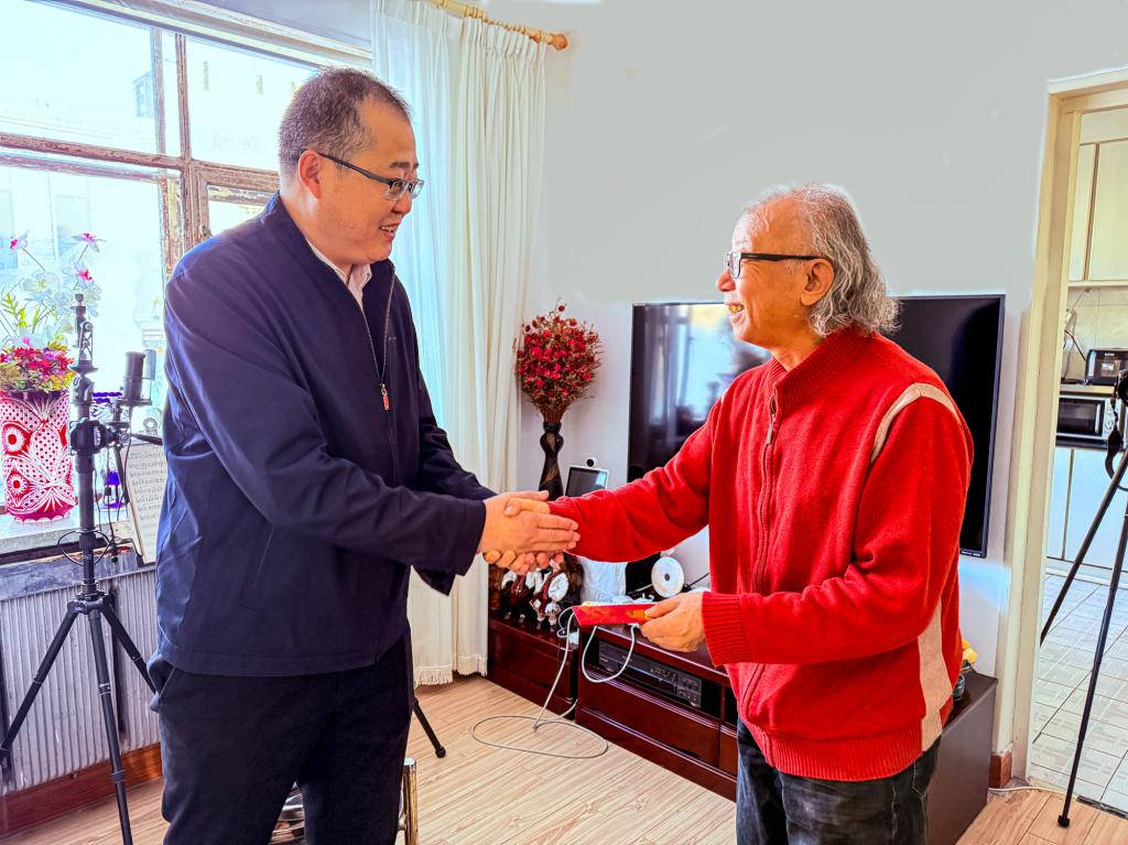 走访过程中,校领导与老同志们亲切交谈,详细询问他们的身体健康状况和生活情况,耐心倾听他们的心声诉求,深入了解他们的实际困难与所需所盼。同时,校领导向老同志们全面介绍了学校2025年在学科建设、人才培养、科研创新、校园发展等各项事业中取得的新进展、新突破,由衷感谢他们在岗期间为学校发展奠定的坚实基础、作出的历史性贡献。校领导殷切希望老同志们保重身体、安享晚年,继续发挥经验优势与威望优势,为学校抢抓“十五五”发展机遇、推进高质量发展积极建言献策,贡献银发智慧和力量。