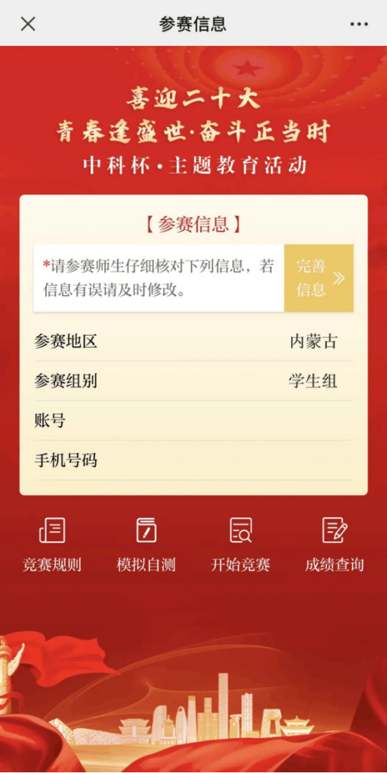 2.为保证本次竞赛的公正性和真实性,参赛者必须以本人手机号注册账户,每人(以手机号为准)仅有一次竞赛答题机会。