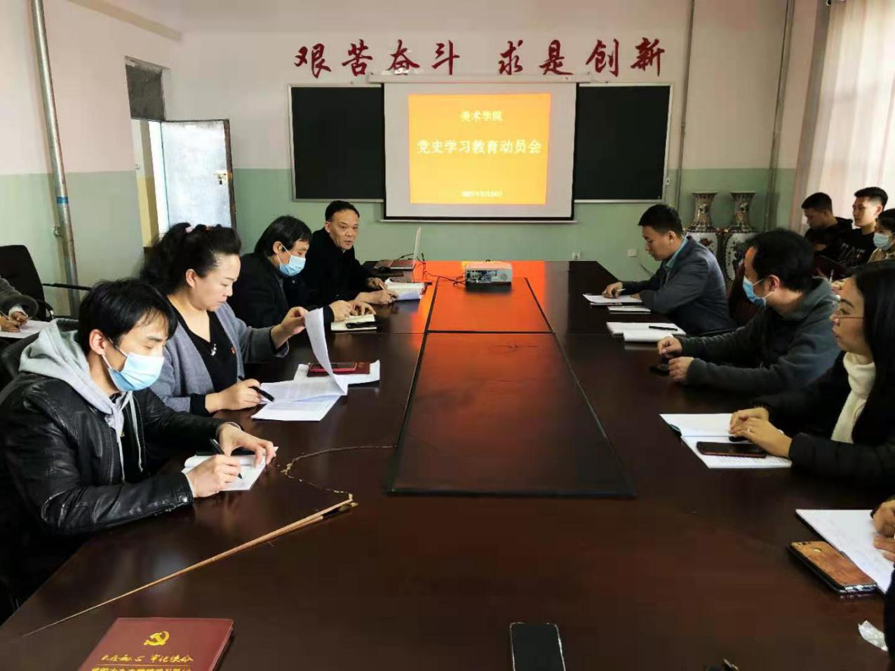 为深入学习贯彻习近平总书记在党史学习教育动员大会上的重要讲话精神,3月24日,美术学院在尚行楼509会议室召开了党史学习教育动员会。学院全体师生党员参加会议。会议由党总支书记包德主持。