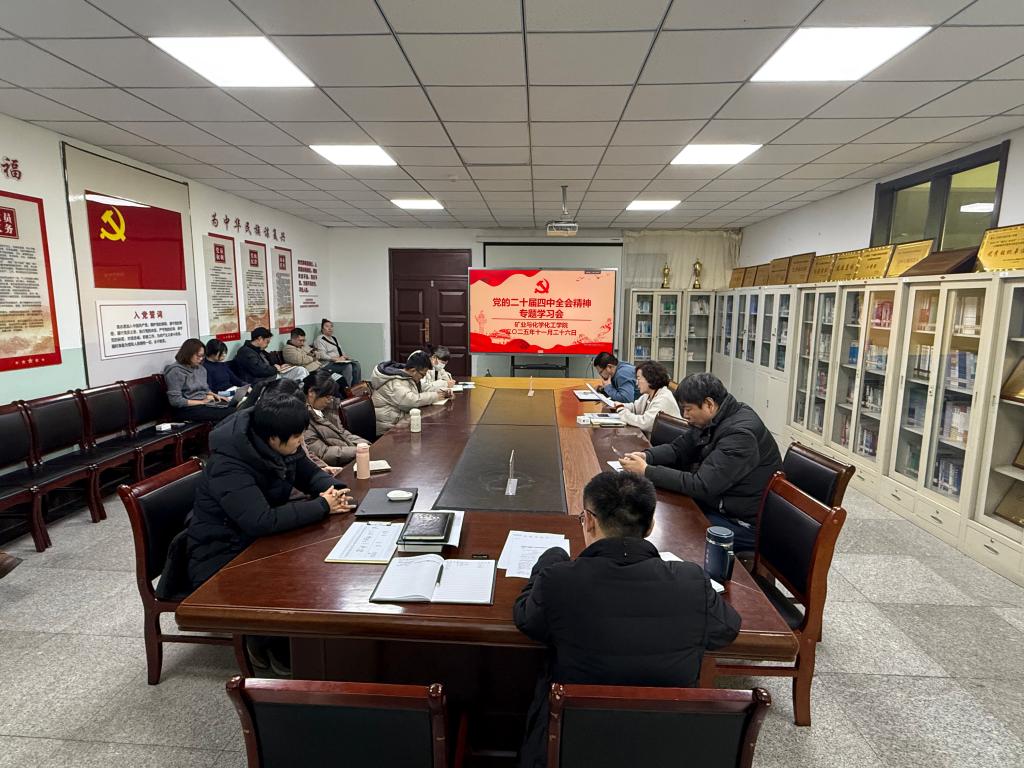 11月26日下午,矿业与化学化工学院开展教职工政治理论学习,深入学习党的二十届四中全会精神。学习会由学院党委书记张阳主持,全体教职工参加会议。