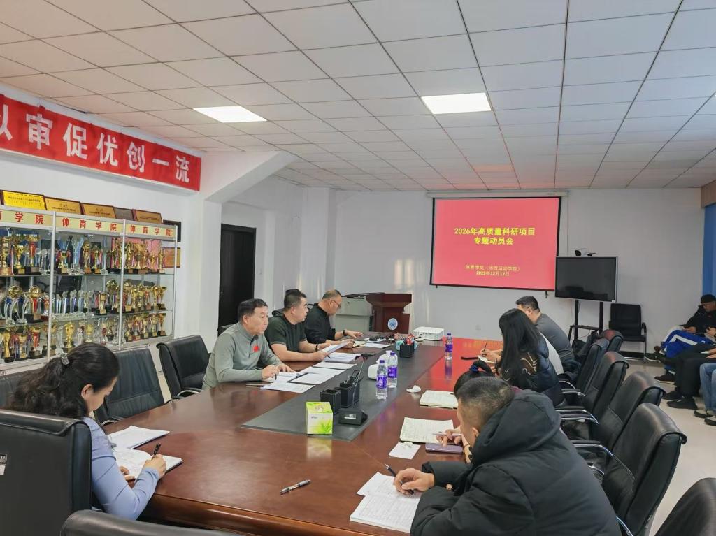 为深入贯彻落实学校关于科研创新工作的总体部署,切实提升学院科研水平与核心竞争力,扎实推进2026年度科研工作,12月17日下午,体育学院(冰雪运动学院)在学院会议室召开了2026年高质量科研工作动员会。本次会议由学院院长李晓峰主持并作动员讲话,学院领导班子成员、各教研室主任、学科带头人及全体教师参会。