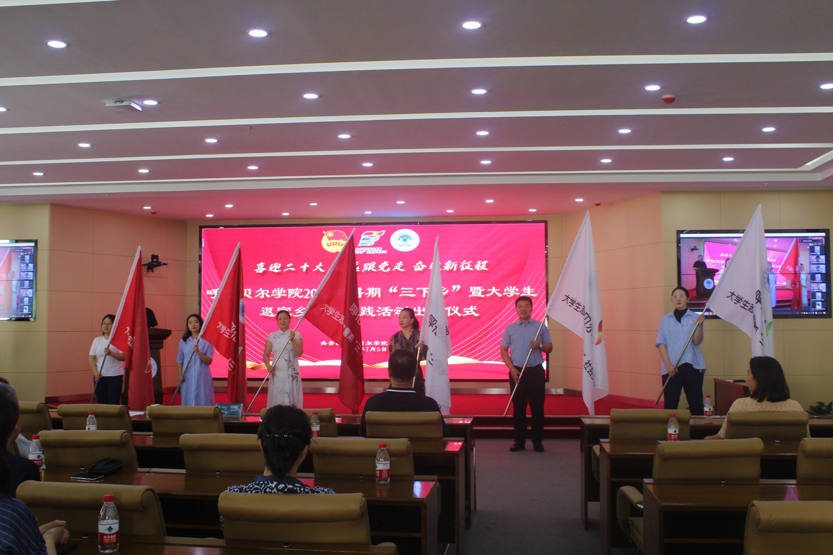 最后,党委副书记张国栋为校级重点实践团队授旗并宣布出征。