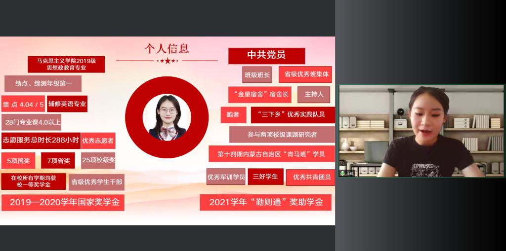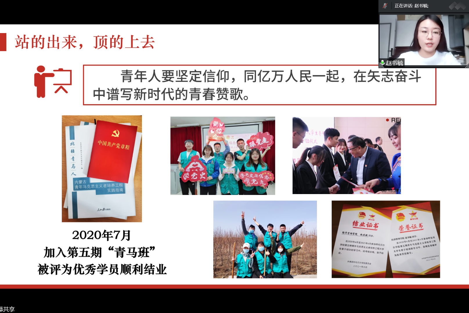 为发挥BV伟德优秀青年学生的榜样力量,提升朋辈教育的实效性和针对性,6月27日校团委举办“奋斗的青春最美丽”典型经验分享会,BV伟德第五期“青马班”学员王佳、BV伟德“十佳大学生”获得者赵书毓、赵紫云分享了他们的典型事迹。校学生会全体成员、各学院学生代表和第七期青马班成员共200余人线上参会,团委王惠老师主持会议。