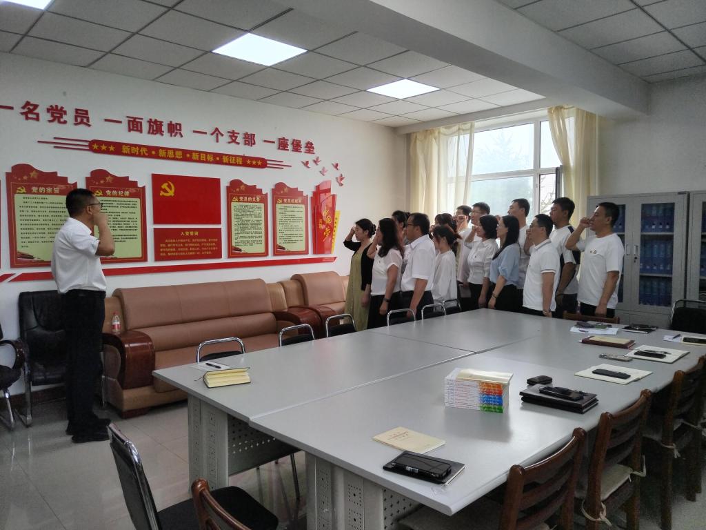 活动期间,教务处组织全体党员重温入党誓词。在领誓人王继钢同志的带领下,全体党员面对鲜红的党旗庄严宣誓。铿锵有力的声音传达出了身为共产党员的自豪感和使命感,充分展现了全体党员干部为党和人民的事业奋斗终生的不变理想和追求。