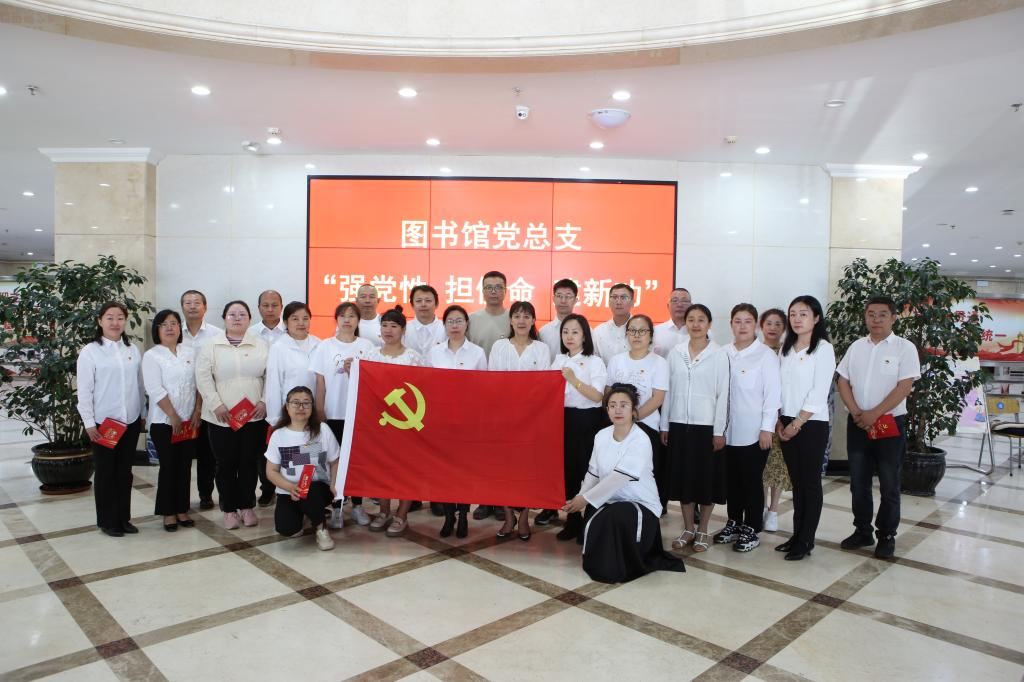 为庆祝中国共产党成立103周年,7月1日上午,图书馆党总支在图书馆一楼主题阅读空间开展了“强党性担使命建新功”庆七一主题党日。