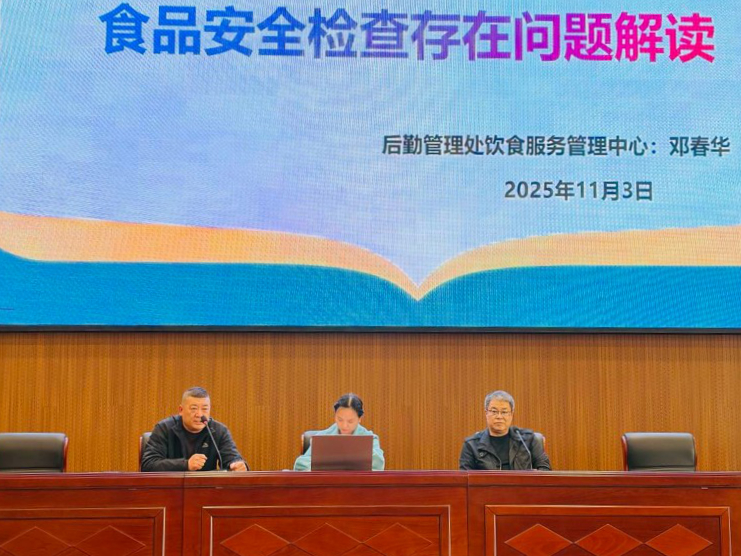 为强化校园食堂食品安全管理,做好本科教育教学审核评估保障工作,11月3日,后勤管理处在图书馆四楼报告厅召开食品安全培训会。后勤管理处党总支书记倪俭主持会议,饮食服务管理中心管理人员、餐饮企业负责人及食堂全体从业人员共300余人参会。