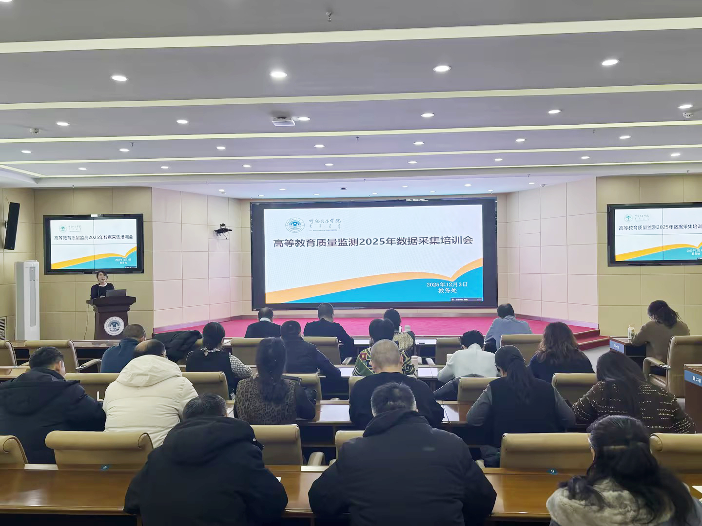 12月3日下午,教务处在崇文楼A201会议室召开高等教育质量监测2025年数据采集培训会。学校教务处全体工作人员、相关职能部门和二级学院负责人及负责数据填报的工作人员参会。