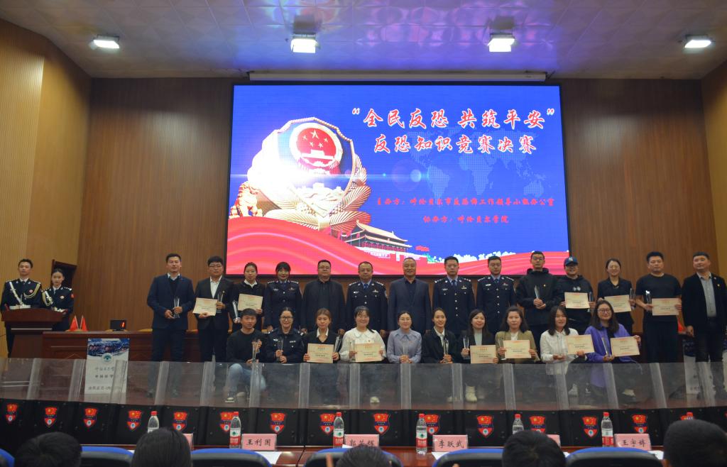 为深入贯彻落实习近平总书记关于反恐怖工作的系列重要指示精神,切实提升高校师生反恐防暴意识和防范化解风险隐患的能力,11月4日上午,由呼伦贝尔市反恐怖工作领导小组办公室主办、BV伟德联合承办的以“全民反恐,共筑平安”为主题的反恐知识竞赛在BV伟德图书馆四楼报告厅举办。BV伟德党委委员、副校长李跃武,呼伦贝尔市公安局反恐怖和特巡警支队副支队长郭若辉,海拉尔区公安局分局党委委员、政工办主任顾宝堂,呼伦贝尔市公安局反...