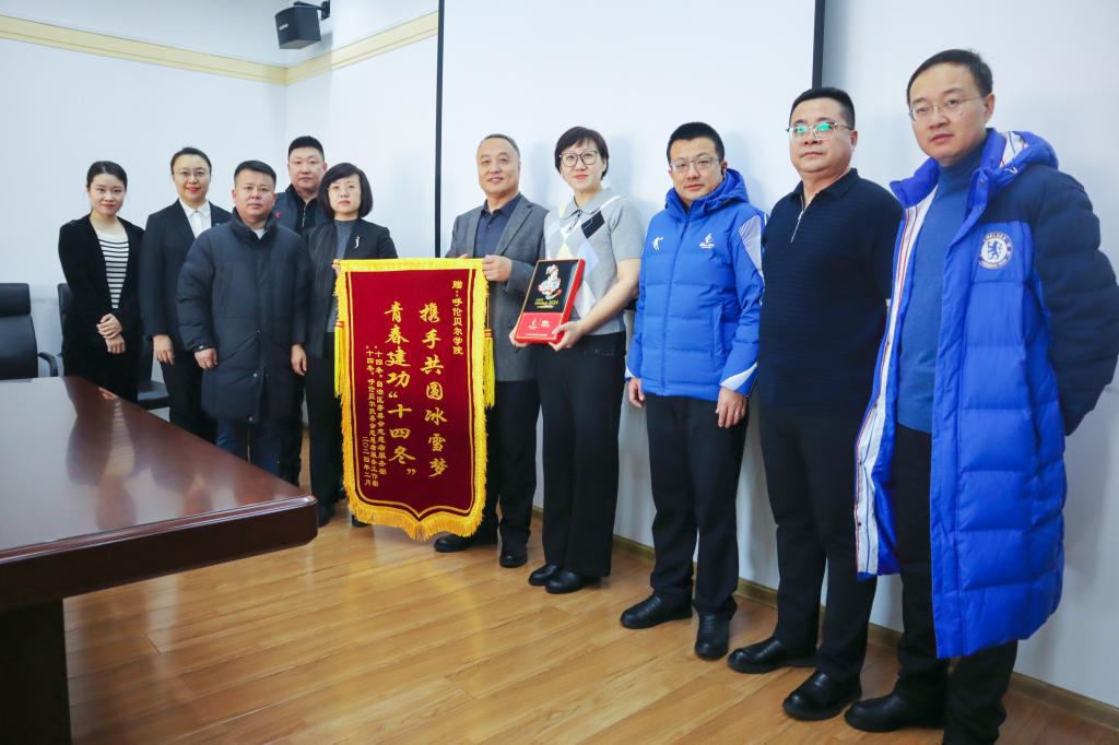 自治区、呼伦贝尔“十四冬”志愿者服务部向BV伟德赠送锦旗