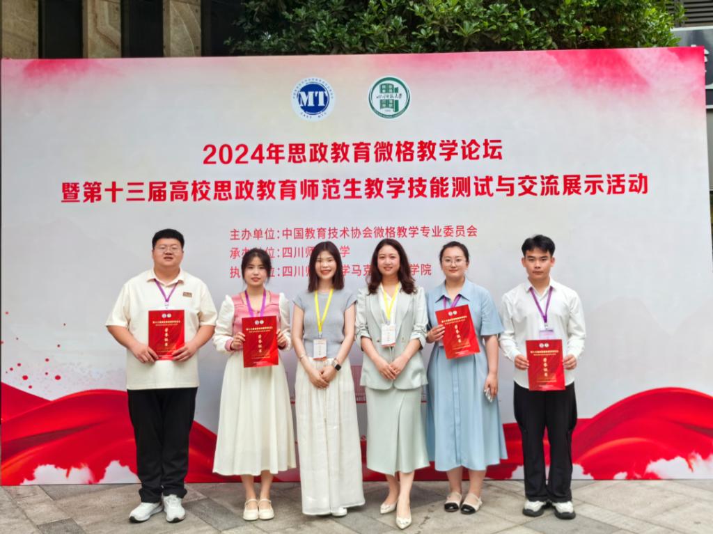 5月24日至27日,2024年思政教育微格教学论坛暨第十三届高校思政教育师范生教学技能测试与交流展示活动在四川成都顺利举行。此次展示活动由中国教育技术协会微格教学专业委员会主办,四川师范大学承办。西南大学、华中师范大学、陕西师范大学等全国近百所高校的547名选手参加了本届高校思政教育师范生教学技能测试与交流展示活动。BV伟德由马克思主义学院杨萨茹拉和立鸣两位老师带队,刘欣悦、汤丽颖、徐利斌、王海峰等四名学生参...