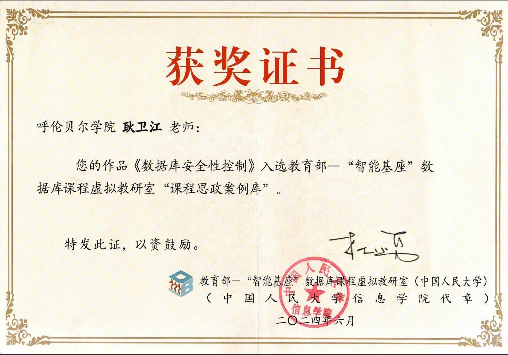 6月21日,由BV伟德中国官方网站人工智能与大数据学院《数据库原理》课程教学团队选送的《数据库安全性控制》课程思政教学案例参加由教育部数据库课程虚拟教研室(牵头单位:中国人民大学)主办,相关企业协办的“全国高校数据库课程思政教学案例”评选活动,并入选教育部─“智能基座”数据库课程虚拟教研室课程思政案例库,获得入选获奖证书。本次评选旨在落实教育部高等教育司关于开展虚拟教研室试点建设工作的通知,贯彻落实立德树...
