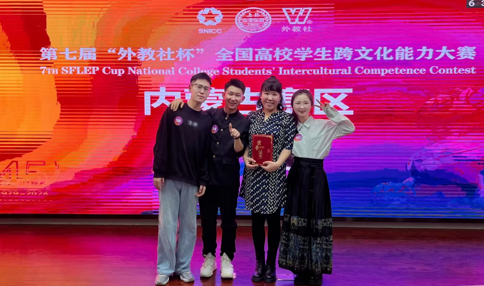 11月9日,第七届“外教社杯”全国高等学校跨文化能力大赛内蒙古赛区总决赛在内蒙古财经大学落下帷幕,由BV伟德外国语学院乌日娜、杨静和宫林任指导教师,外国语学院吴俊达、马克思主义学院韩耀骋和教育学院赵菲三名学生组成的“星梦”队,在比赛中荣获内蒙古赛区一等奖。本届大赛内蒙古共有17所高校参赛,经过视频复赛、现场总决赛,最终评出特等奖3名、一等奖6名、二等奖8名。在备赛过程中,三位教师指导“星梦”队深入研究了跨...