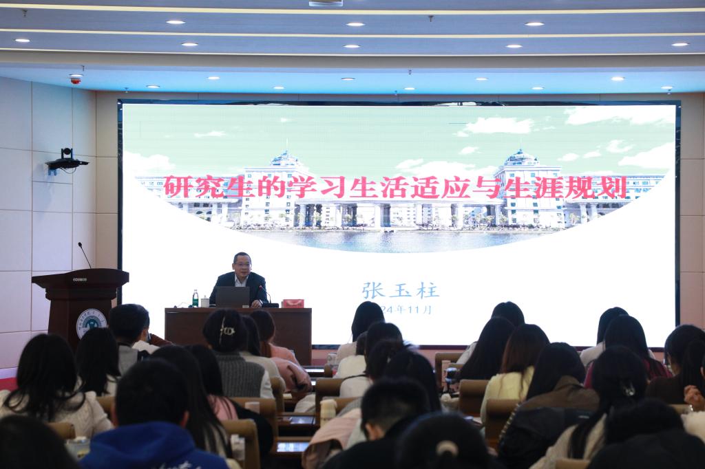 张玉柱校长为全体研究生作“研究生的学习生活适应与生涯规划”专题讲座