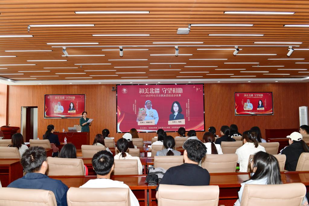 为进一步深化铸牢中华民族共同体意识教育,弘扬民族团结精神,按照BV伟德2025年“民族政策宣传月”“民族法治宣传周”工作部署,2025年5月16日,由党委宣传部、马克思主义学院、刘凤琴名师工作室共同举办“和美北疆 守望相助”——讲好呼伦贝尔民族团结进步故事主题宣讲报告会。活动特邀全国五一劳动奖章获得者、“国家的孩子”敖德巴拉,鄂温克族自治旗巴彦嵯岗苏木人民政府党委委员、政府副苏木达鲁燕两位嘉宾,以真实经历和动...