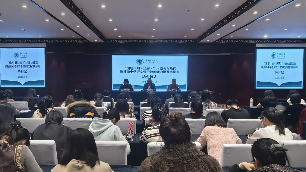 11月1日上午,“国培计划(2025)”内蒙古自治区旗县级小学语文骨干教师能力提升培训结班仪式顺利举行。继续教育学院党总支书记李健、副院长汪鑫,海拉尔区教育研修中心小学教研室主任由秀芳及全体参培骨干教师出席仪式,为此次培训画上圆满句号。结班仪式上,李健向圆满完成全部培训任务、即将重返教学岗位的全体学员致以热烈祝贺。他指出,国培计划不仅是知识传递的重要平台,更是联结教师情感、为教师成长赋能的关键桥梁。同...