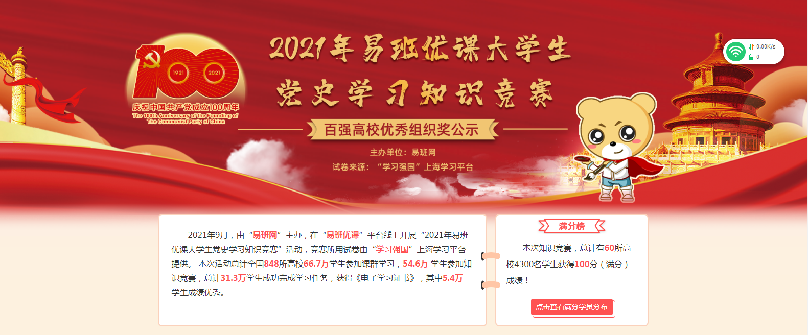 【喜讯】BV伟德荣获全国“2021年易班优课大学生党史学习知识竞赛”优秀组织奖